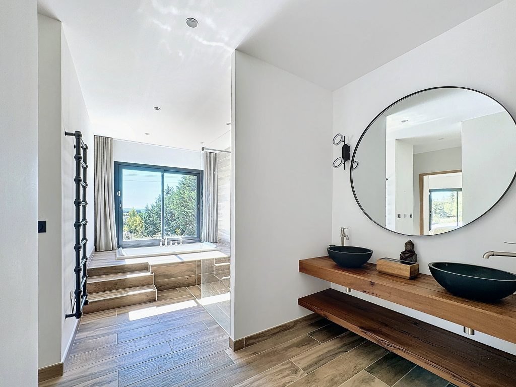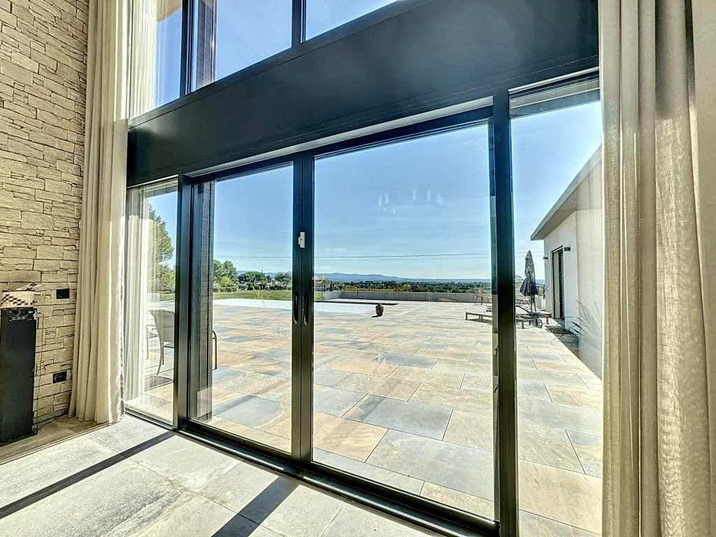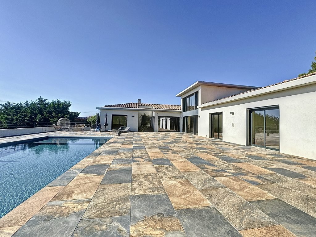 Aix en Provence, dans un cadre idyllique, à 10 min du centre en ville, habitation contemporaine de plus de 500 m² avec une vue dominante et dégagée sur la campagne aixoise. Cette propriété contemporaine de 530 m² est bâtie sur un beau terrain de 4000 m² avec piscine, une très grande terrasse au sud avec une vue magnifique. La maison est composée d'une grande pièce de vie de plus de 110 m² particulièrement lumineuse. Elle présente un salon avec cheminée, une salle à manger donnant au sud sur la terrasse et ses grandes baies vitrées et une cuisine ouverte toute équipée, plus cellier attenant. On trouve également une belle suite parentale de plus de 45 m² avec salle de bain et dressing, et 3 autres suites (de plus de 20 m² chacune) avec salle d'eau. A cela s'ajoute un grand bureau en mezzanine de 22 m². L'ensemble de la maison est tournée vers le sud, la vue et la terrasse. Piscine à débordement, environnement calme, prestation haut de gamme, construction récente. Possibilité d'aménager un appartement indépendant. Au sous-sol plus de 230m² de surface utile carrelés/isolés/chauffés pouvant être aménagés en salle de sport, home cinéma, cave à vin, salle de jeux, ou même un grand dortoir/salle de jeux pour les enfants. Garage couvert et abri voitures pour 5 voitures plus local vélos. Le jardin de 4000m² est agrémenté de très beaux arbres (oliviers, pins et plantes méditerranéennes) et de l'arrosage automatique. Chauffage et climatisation alimentés par des pompes à chaleur (électriques). Eau du Canal de Provence. Proximité bus - écoles - commerces - activités sportives (golf à proximité) et facile d'accès au centre-ville d'Aix en Provence. Les informations sur les risques auxquels ce bien est exposé sont disponibles sur le site Géorisques PRIX : 2 990 000 € honoraires inclus | 2 890 000 € hors honoraires | Honoraires : 3,46% TTC à la charge du vendeur.